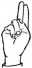 На ћирилици написано ХРАНИМИР ЧАЈЕТИНАЦ састоји се из 17 слова [?]. Исписано ћириличном једноручном азбуком за глувонеме: